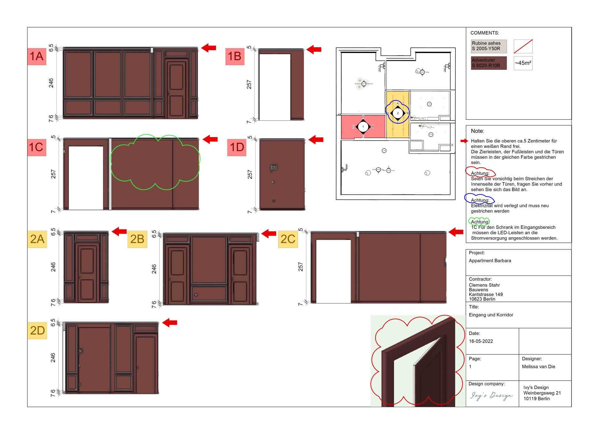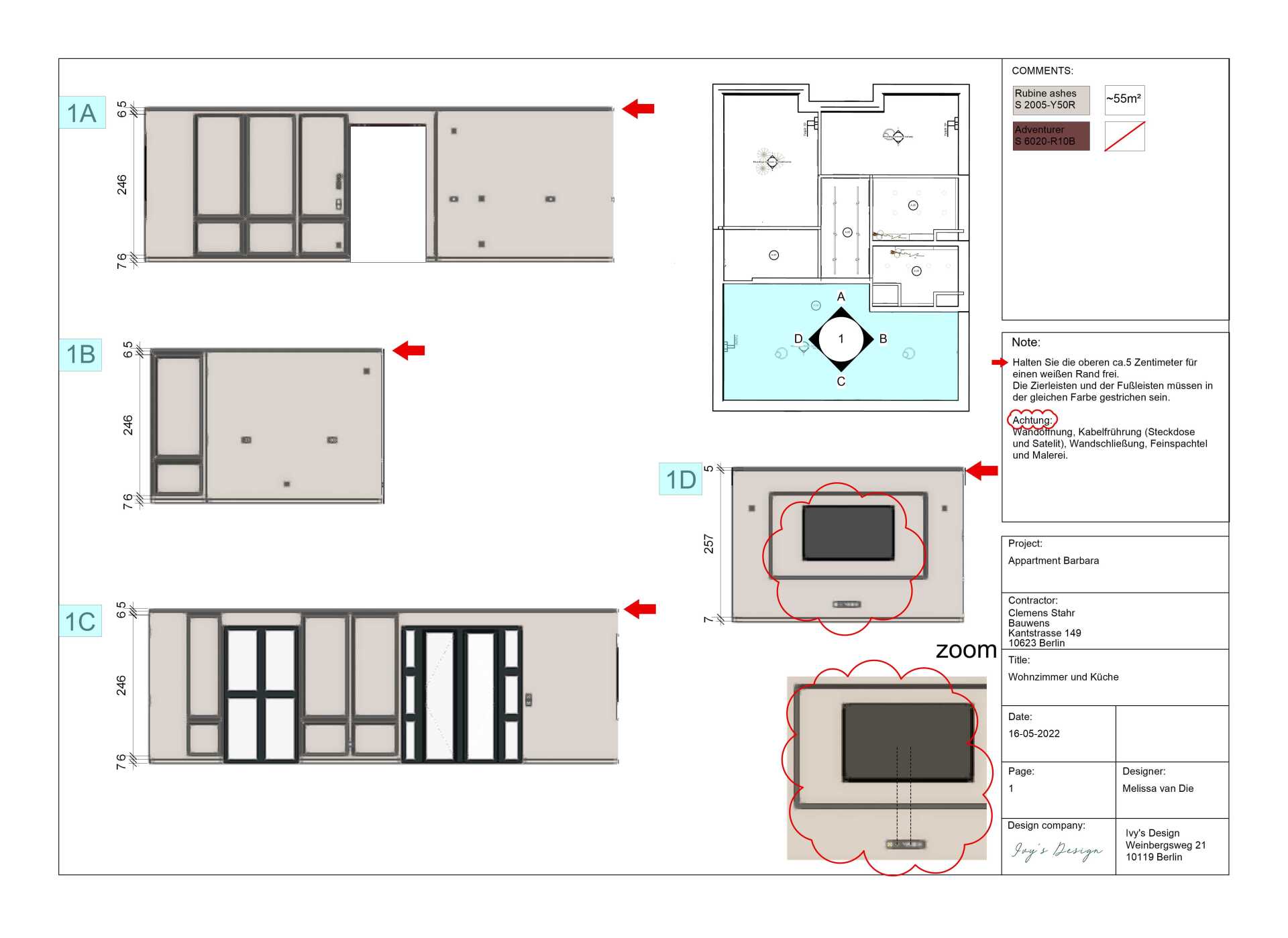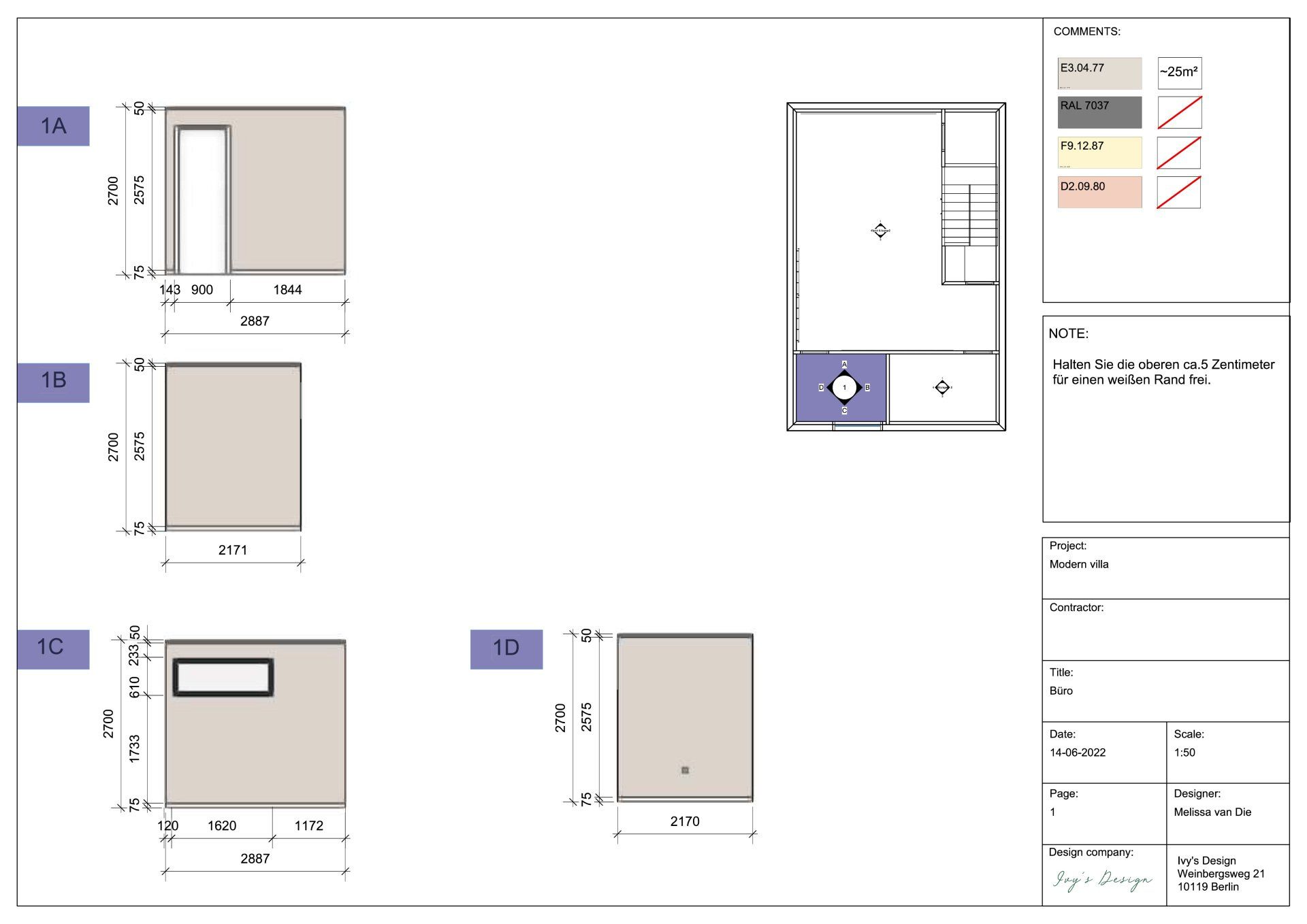 Tijdens mijn stage in Berlijn heb ik veel meegeholpen met projecten voor particuliere en zakelijke klanten. Van een groot flex kantoor tot aan een villa in Kroatië. Het was erg leuk om mee te mogen denken en ontwerpen van alle ruimtes.
